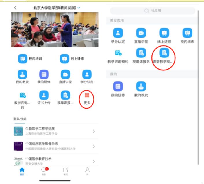 5.青教研修班学员观摩课程不需要签到,只需通过学习通APP-更多-课堂教学观摩记录表路径填写记录即可。